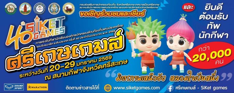 “ศรีเกษเกมส์” การแข่งขันกีฬานักเรียนองค์กรปกครองส่วนท้องถิ่นแห่งประเทศไทย ระดับประเทศ ครั้งที่ 40 วันที่ 20-29 ม.ค. 2569